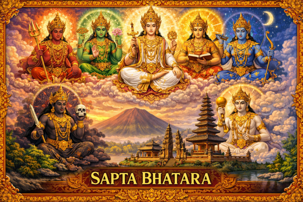- SAPTA BHATARASAPTA BHATARA (Tujuh Dewa Penjaga Bali) Asal-usul Sapta Bhatara adalah tujuh putra suci dari Bhatara Hyang Pasupati, yang masing-masing ditugaskan untuk menjaga gunung-gunung suci di Bali. Mereka merupakan perwujudan kekuatan ilahi untuk melindungi dan menjaga… Read more: SAPTA BHATARA